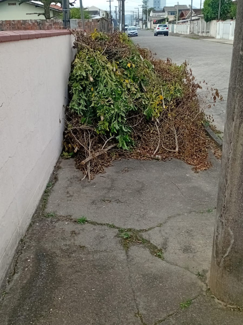 JUSTIFICATIVA:A arvore existente no local ja foi cortada, porém os galhos e resíduos resultantes da poda permanecem acumulados sobre a calçada, dificultando a passagem de pedestres e comprometendo a limpeza urbana. A solicitação visa garantir a manutenção da via pública, a segurança dos pedestres e a boa conservação do espaço